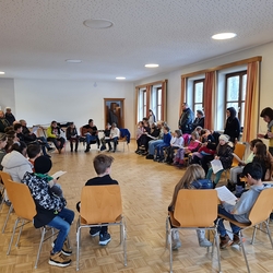 So viele Eltern begleiteten ihre Kinder und standen allen hilfreich zur Seite! Ein herzliches Danke dafür! Auch danke an Franziska Zachenegger und Cesar Cabesa, die die Kirchenführung mit den Kindern leiteten.
