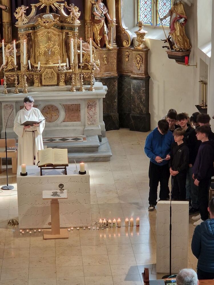 Noch einmal wurden – wie schon am Friedhof – die Namen der Verstorbenen von Allerheiligen 2022 bis Allerheiligen 2023 vorgelesen. 43 Teelichter wurden entzündet, eines davon für alle nicht namentlich genannten Verstorbenen.